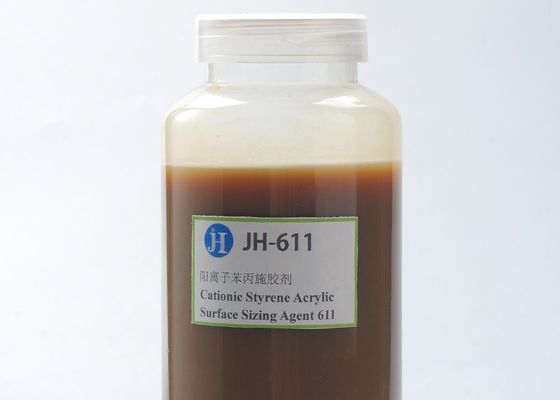 Jh-611 είναι ένα είδος αποτελεσματικού κατιονικού ακρυλικού γαλακτώματος στυρόλιου που ομο-πολυμερισμένος από το στυρόλιο, acrylate&kinds των πολυμερών σωμάτων μέσω της ειδικής διαδικασίας παραγωγής. Μπορεί αποτελεσματικά να αντιστοιχηθεί το άμυλο και να αφήσει το στρώμα αμύλου να αποδώσει καλύτερα στη διασύνδεση της δύναμης και του hydrophobicity. Η λιγότερες χαμηλότερου κόστους, καλύτερων επιφάνεια δόσης, που ταξινομούν την επίδραση και η ευκολία είναι κύρια χαρακτηριστικά JH-611.It χρησιμοποιούνται ευρέως στην παραγωγή του ζαρωμένου χαρτιού, του χαρτονένιου, άσπρου χαρτιού πινάκων, του χαρτιού τεχνών και κ.λπ.