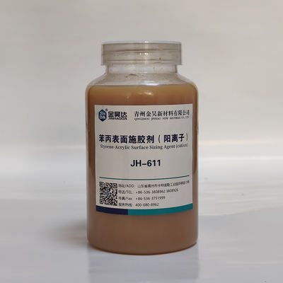 Το JH-611 είναι ένα είδος αποτελεσματικού κατιονικού στυρενίου ακρυλικού γαλακτομείου που συν-πολυμερίζεται από στυρενίο, ακρυλικό και διάφορα είδη πολυμερών μέσω ειδικής διαδικασίας παραγωγής.Μπορεί να ταιριάζει αποτελεσματικά με το άμυλο και να αφήσει το στρώμα άμυλου να λειτουργεί καλύτερα στην αντοχή διασταύρωσης και υδροφοβικότητα.Λιγότερη δοσολογία, χαμηλότερο κόστος, καλύτερη επιφάνεια μεγέθους αποτέλεσμα και ευκολία είναι τα κύρια χαρακτηριστικά του JH-611.Εργασιακό χαρτί κλπ.